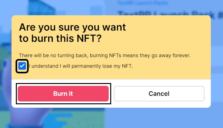 * A prompt will appear to confirm if you want to proceed with burning the NFT.