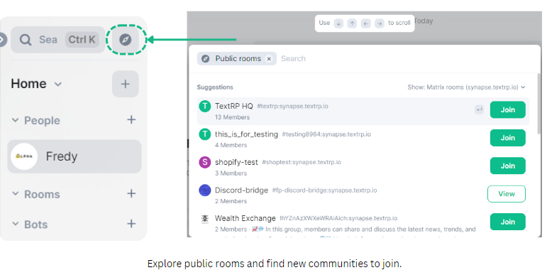 * Click on the “Explore Public Rooms” button.