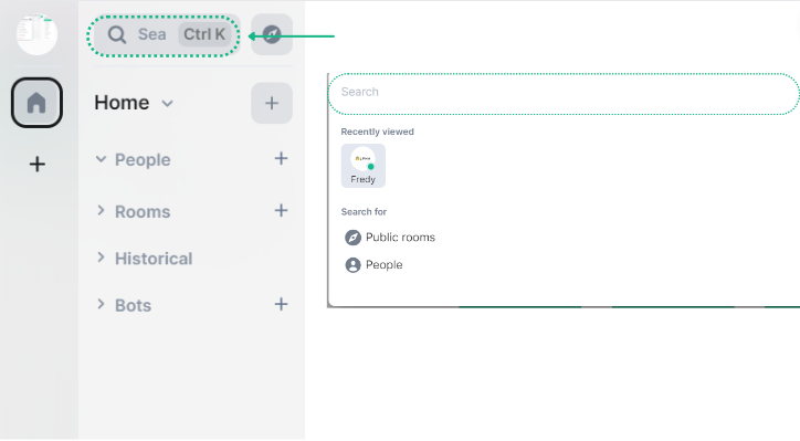 * Click on the “+” button next to “Direct Messages” or “Rooms”.